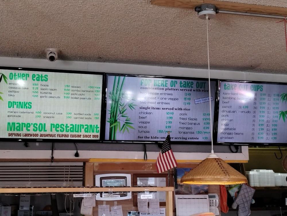 Welcome to Maresol Restaurant, your go-to destination for authentic Filipino and Southeast Asian cuisine in Lakewood, WA. Locally owned and operated, we pride ourselves on offering simple, traditional dishes in a relaxed, inviting atmosphere. Whether you're stopping by for a casual lunch, a delightful dinner, or a quick bite, our menu is designed for sharing and savoring. Enjoy our accessible facilities and friendly service, perfect for groups and solo diners alike. With easy parking options and convenient takeout and delivery services, Maresol is the ideal spot for a memorable dining experience. Join us today!